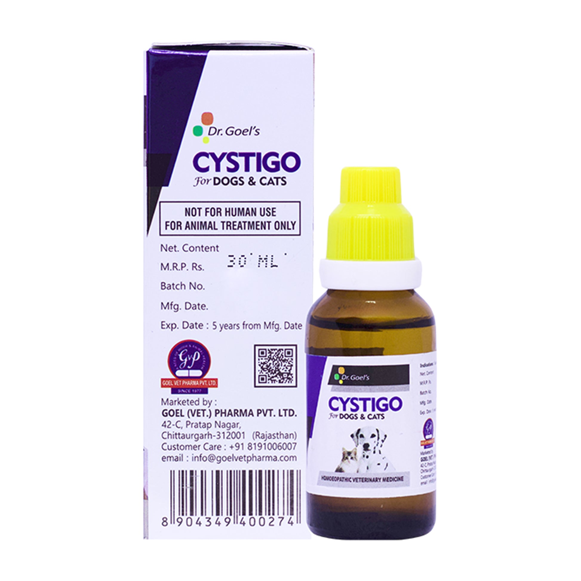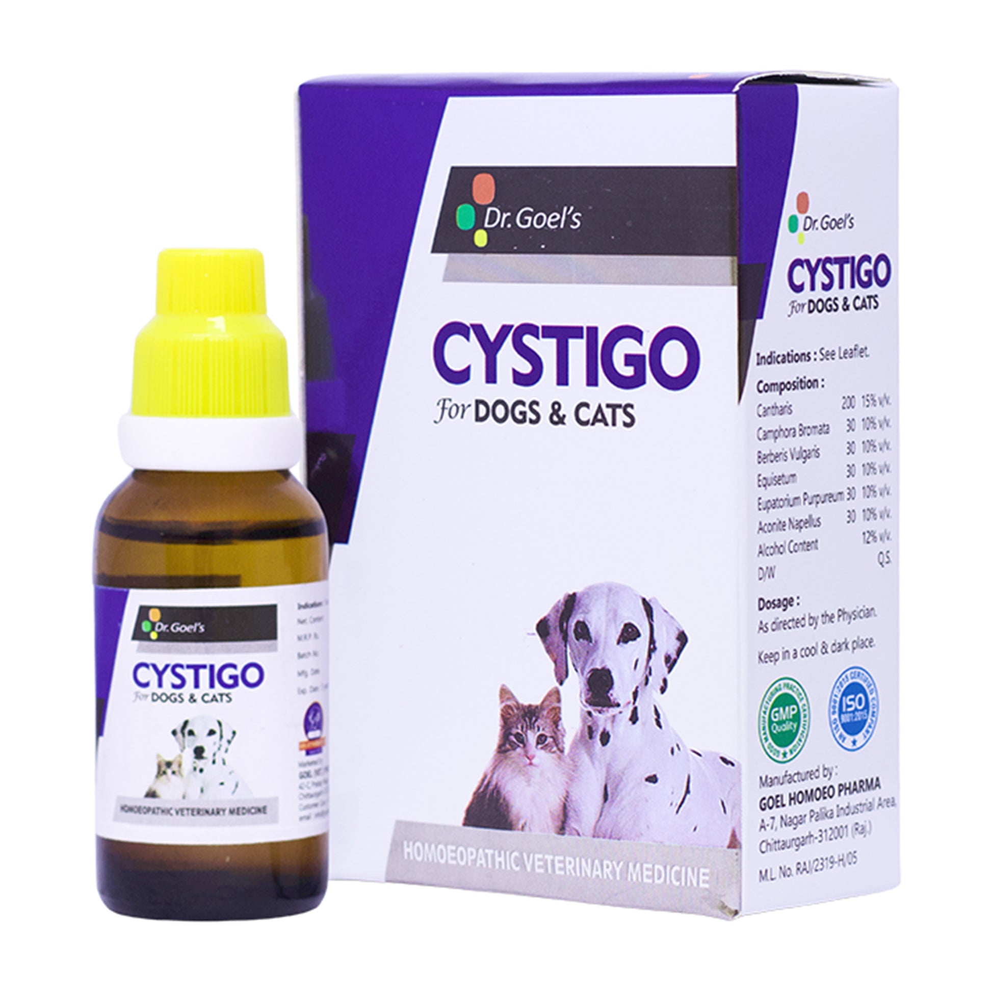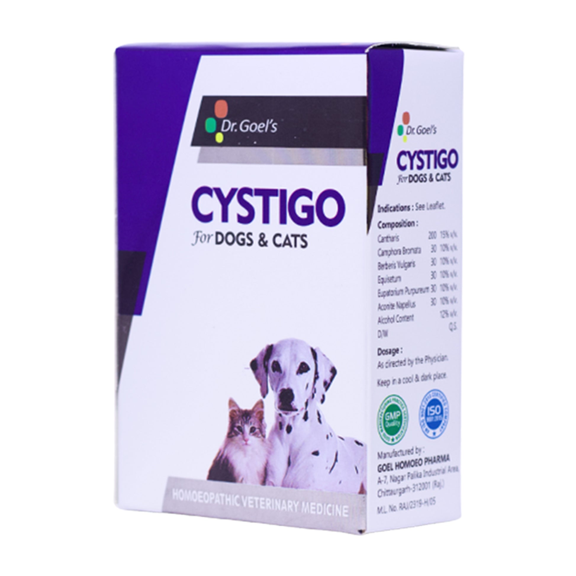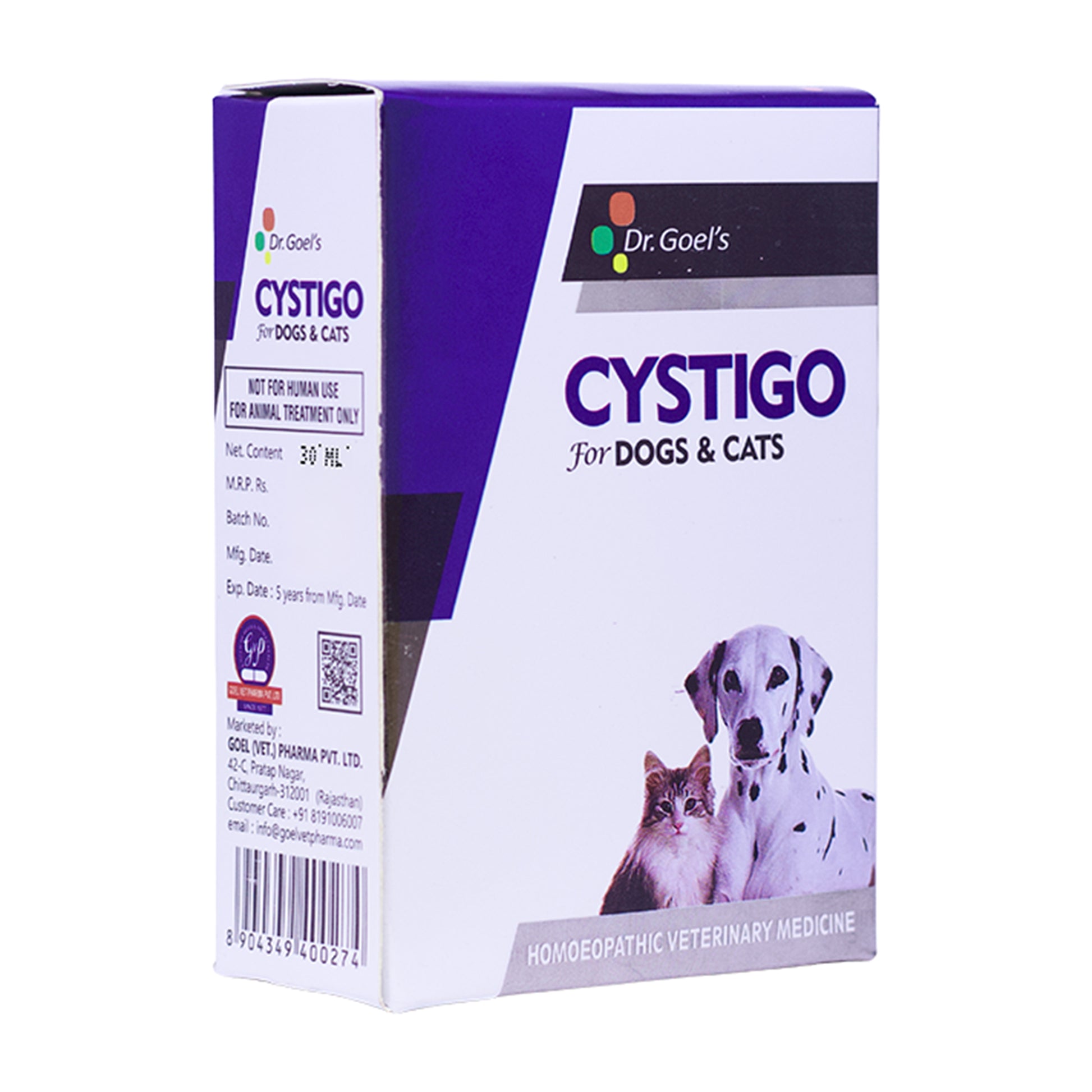 CYSTIGO for pets is the best remedy in treating symptoms of painful urination (dysuria), frequent urination (polyuria), straining urination (stranguria), excessive thirst (polydipsia), blood in the urine(haematuria). It is also very effective in cases of renal calculi and urinary tract infections in pets.