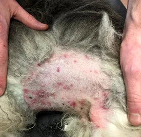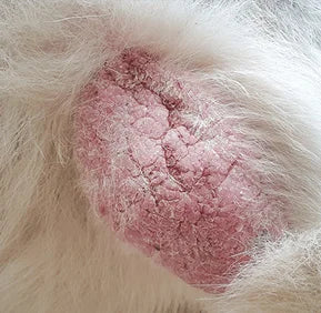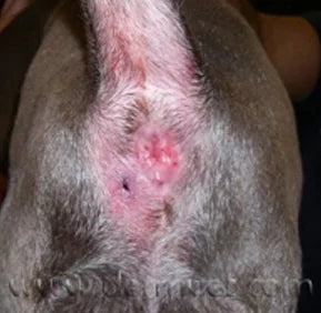 Tail region is quite a common area for flea infestation causing flea- associated dermatitis. For dermatitis- Dermisule / me and my skin and coat granules
