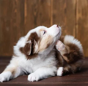 Despite its name, ringworm is not caused by a worm but by a fungus. The term ring” comes from the circular patches that can form anywhere but are often found on a dog’s head, paws, ears, and forelegs. Inflammation, scaly patches, and hair loss often surround the lesions. Puppies less than a year old are the most susceptible, and the infection can spread quickly between pets in a kennel or to pet owners at home. Various anti-fungal treatments are available.