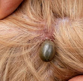 Ticks, like fleas, are external parasites that feed on the blood of their hosts. You can spot a tick feeding on a dog with the naked eye. To properly remove a tick, gently pull it straight out. Twisting or pulling too hard may cause the head to remain lodged in the pet’s skin, which can lead to infection. Place the tick in a jar with some alcohol for a couple of days, and dispose of it once it is dead. In addition to causing blood loss and anaemia, ticks can transmit Lyme disease and other potentially serious bacterial infections.