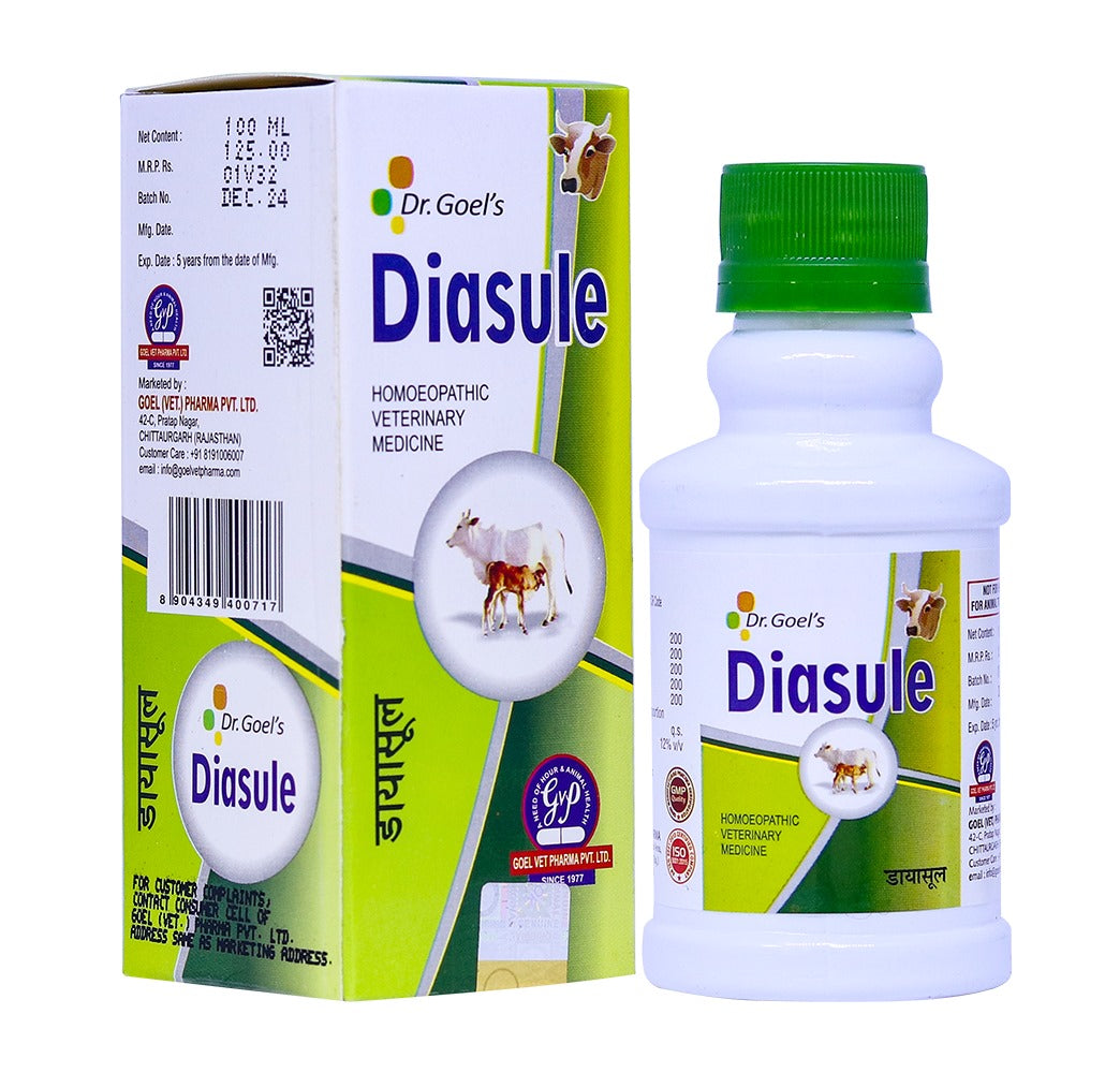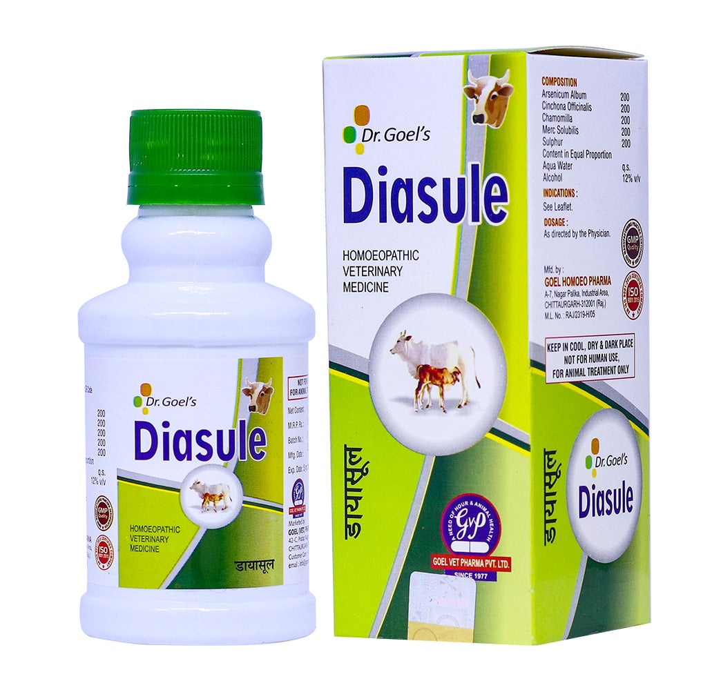 DIASULE for CATTLE is the best Homeopathic Veterinary Medicine for Cattle that protects animals from infectious diarrhea. DIASULE for CATTLE is the best combination of different homeopathic medicines which has proven effective in different types of diarrhea in large animals.