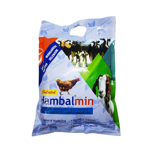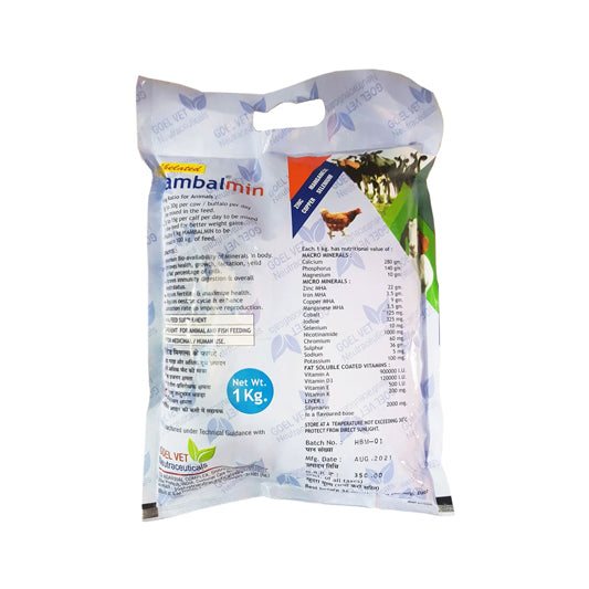 HAMBAL MIN 1KG is the best ANIMAL FEED SUPPLEMENT for Cattle that is Chelated herbal and mineral mixture improves milk production, enhances reproductive capability, and provides overall growth of young calves, cows, and buffaloes. Mineral Mixture acts as a Growth Promoter – Increase Milk Production – Increase Fat Percentage & SNF in Milk, Improves Milk Production, Enhance Growth & Immune Function, Helps in Overall Growth.