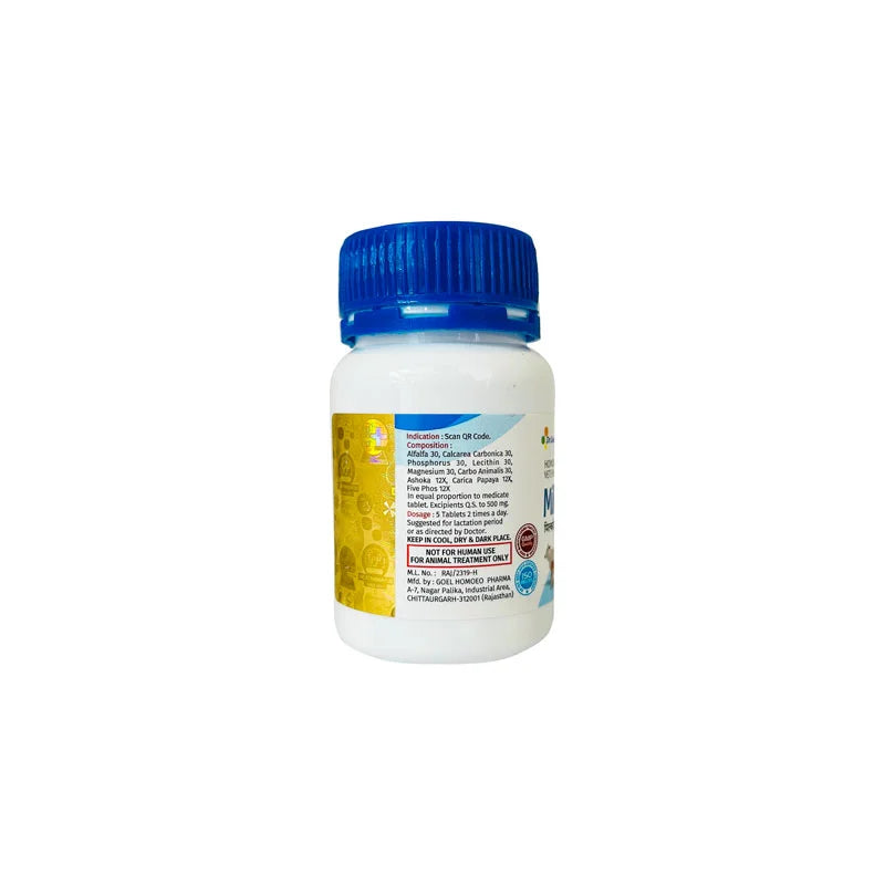 MILKOGEN is an advanced Homoeopathic Veterinary formulation for lactating animals. MILKOGEN stimulates the lactating tubules and nourishes them by increasing the metabolism of calcium and other important minerals that aid in the production of milk. It helps in restoring the decreased milk production resulted due to calving, acute illness, deworming, vaccination, or any other stress. It helps in improving the metabolism of the liver, thus reducing the stress on calcium channels and other essential minerals, thus reducing the load on long bones. It increases both the quantity and quality of milk by improving the fat milk percentage.
