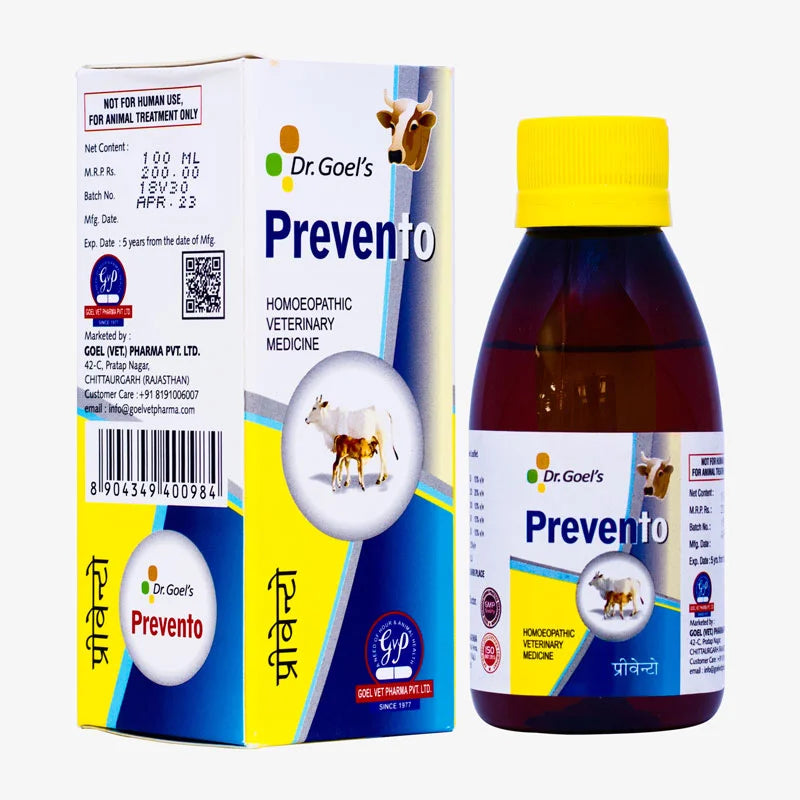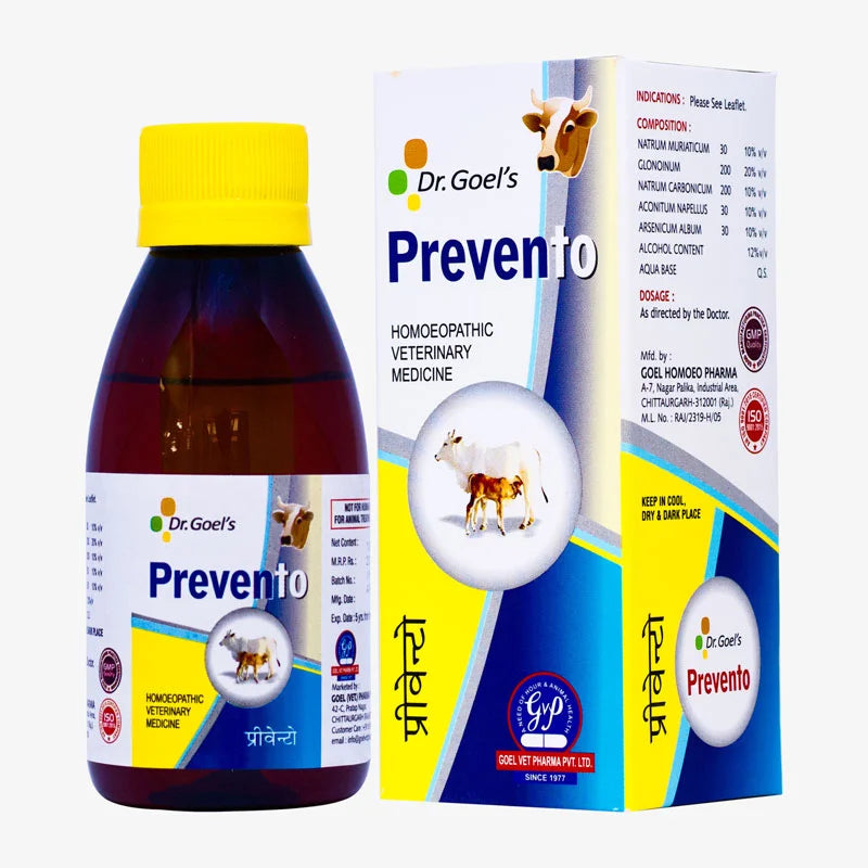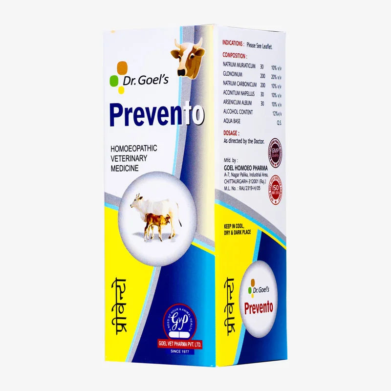 - PREVENTO for CATTLE is for large animals showing panting due to sun-stroke, heat stroke, excessive cold, or after recovering from foot and mouth disease