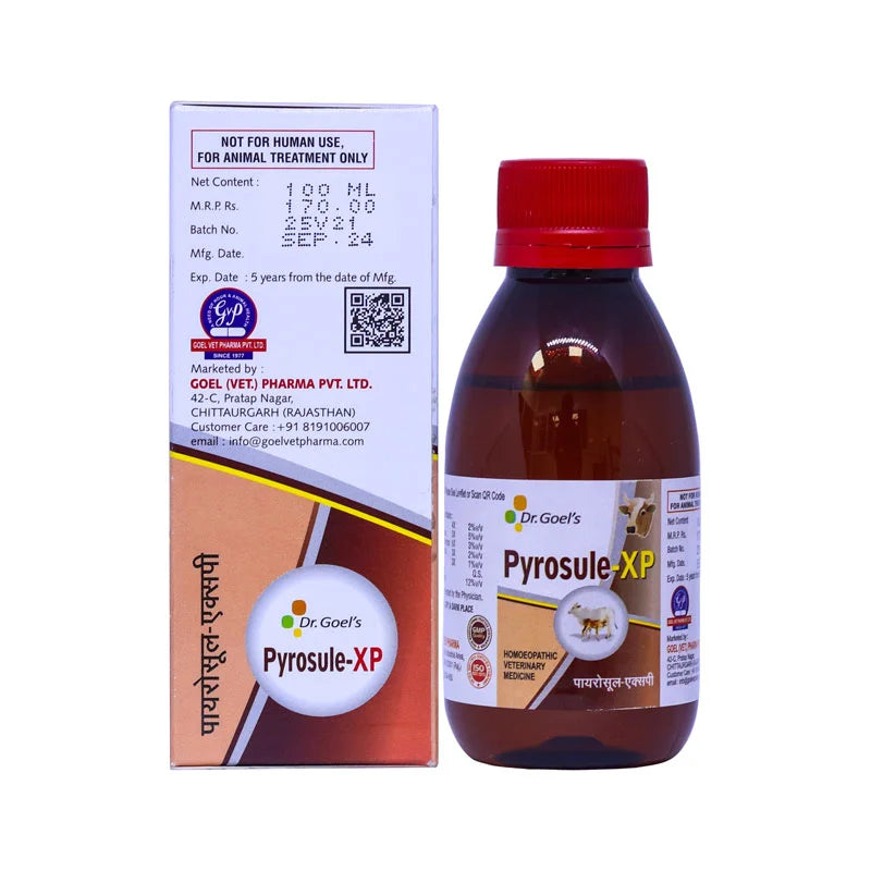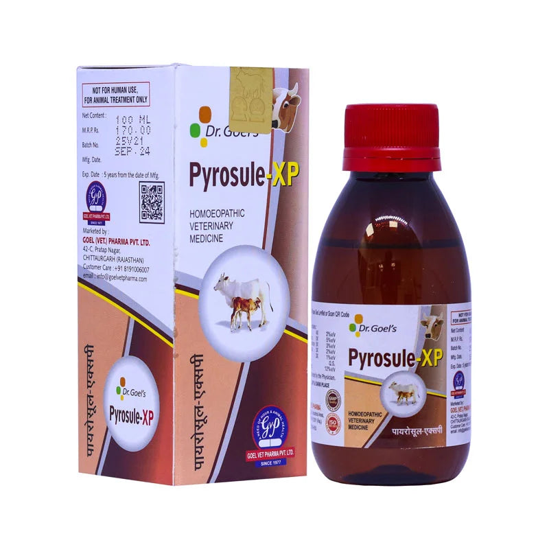 PYROSULE-XP for CATTLE is the best Homeopathic Veterinary Medicine for Cattle that protects animals from infection. PYROSULE-XP relieves muscular and nervous pain that occurs during a fever and even decreases the severity of the fever.