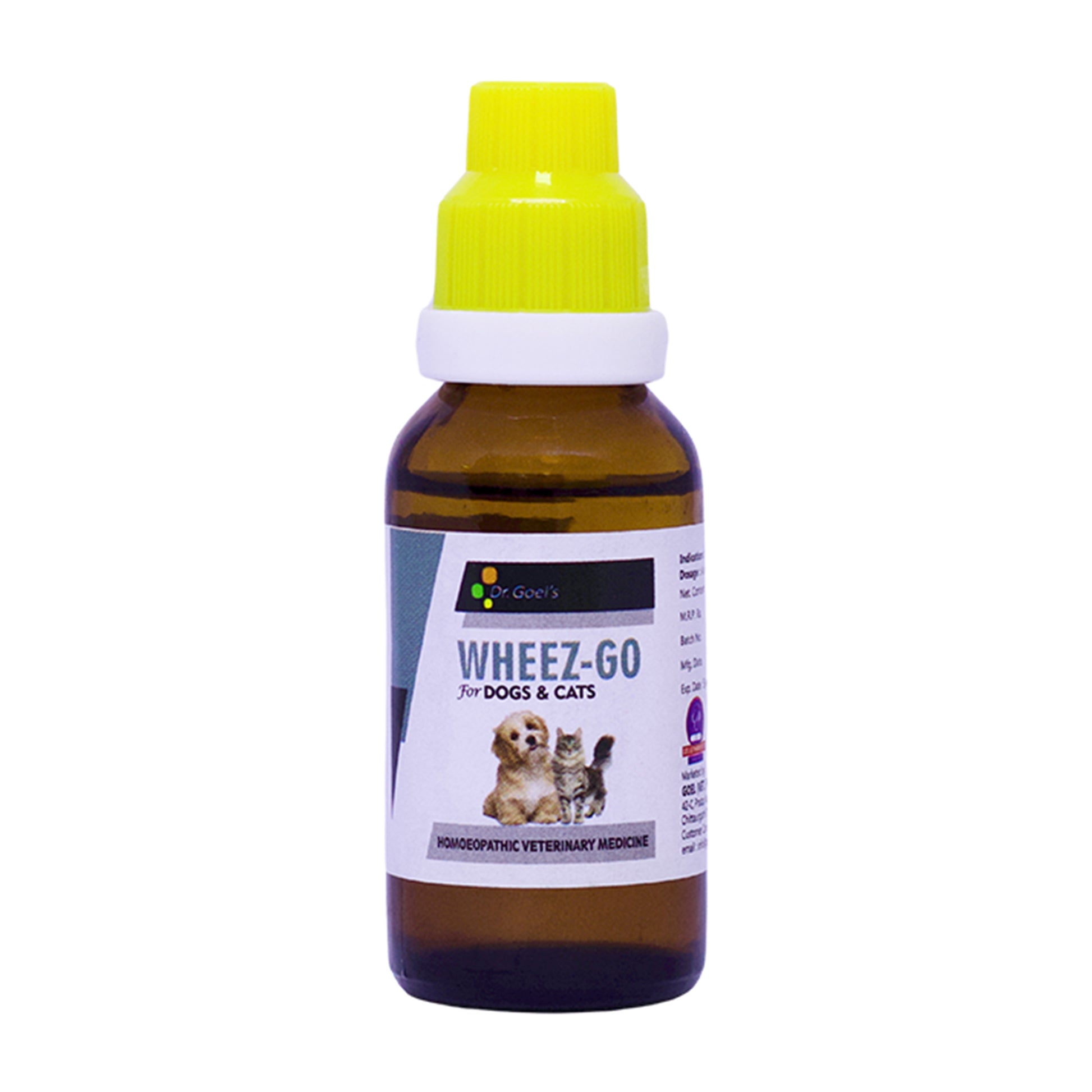 WHEEZ-GO for PET, A Unique formulation for respiratory disorders in pets. It is based on homeopathic principles, ie. ” Similia similibus curanter” Likes to be treated by likes; hence one could easily understand that the following symptom of different medicine, when available in a case, can be cured by these medicines. This formulation was developed by a renowned veterinarian in India after long consultations with homeopaths and trials of different medicine in field conditions for years.